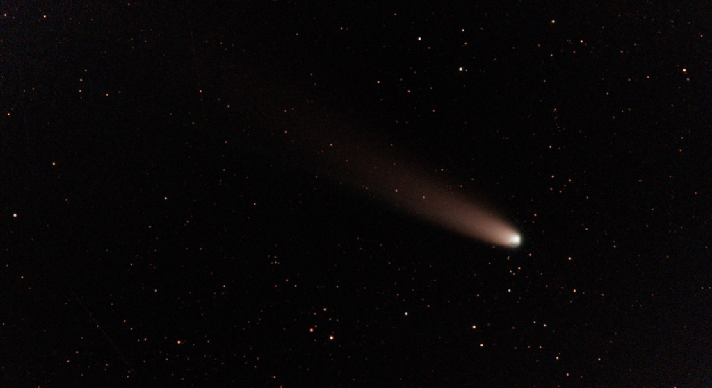 Vespera Ⅱ が修理から戻ってきたので、テストを兼ねて、本日11月7日に天体観測を行いました。あいにくの満月でしたが、天気は快晴。月が昇る前にレモン彗星を撮影しました。今回はモザイクモードで撮影してみました。トリミング以外画像処理はしていません。彗星が石のような影と共に撮れています。
