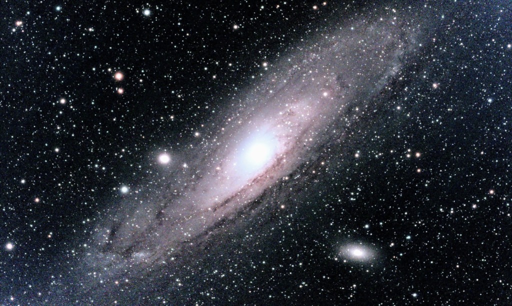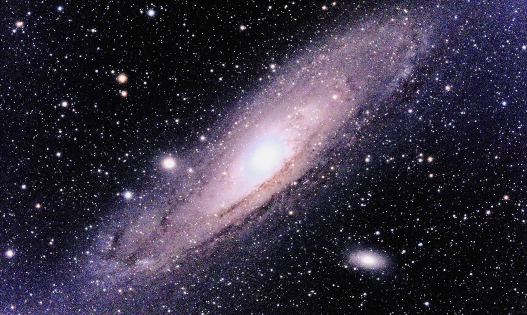 0時から3時まではアンドロメダ銀河をずっとスタック撮影していたのですが、なぜか1時間半で止まってしまっていたようです。左側は撮ってだし、右側は180°回転して、Photoshopで加工したものです。加工すれば綺麗にアンドロメダ銀河になりますね。